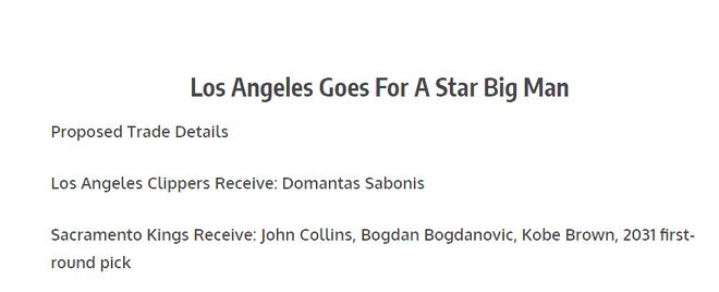 ✅国王得到:约翰・柯林斯、博格丹・博格达诺维奇、科比・布朗、2031年首轮选秀权