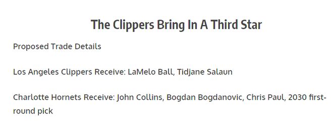 ✅快船得到:拉梅洛・鲍尔、蒂贾恩・萨劳恩